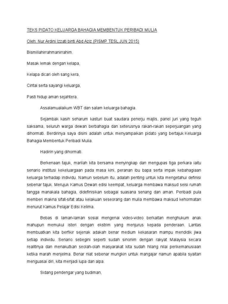 Nur ardini izzati binti abd aziz pismp tesl ! 7/24/2019 contoh teks syarahan 1/3teks pidato keluarga bahagia membentuk peribadi muliaoleh: Format pendahuluan, isi dan penutup terbaik?